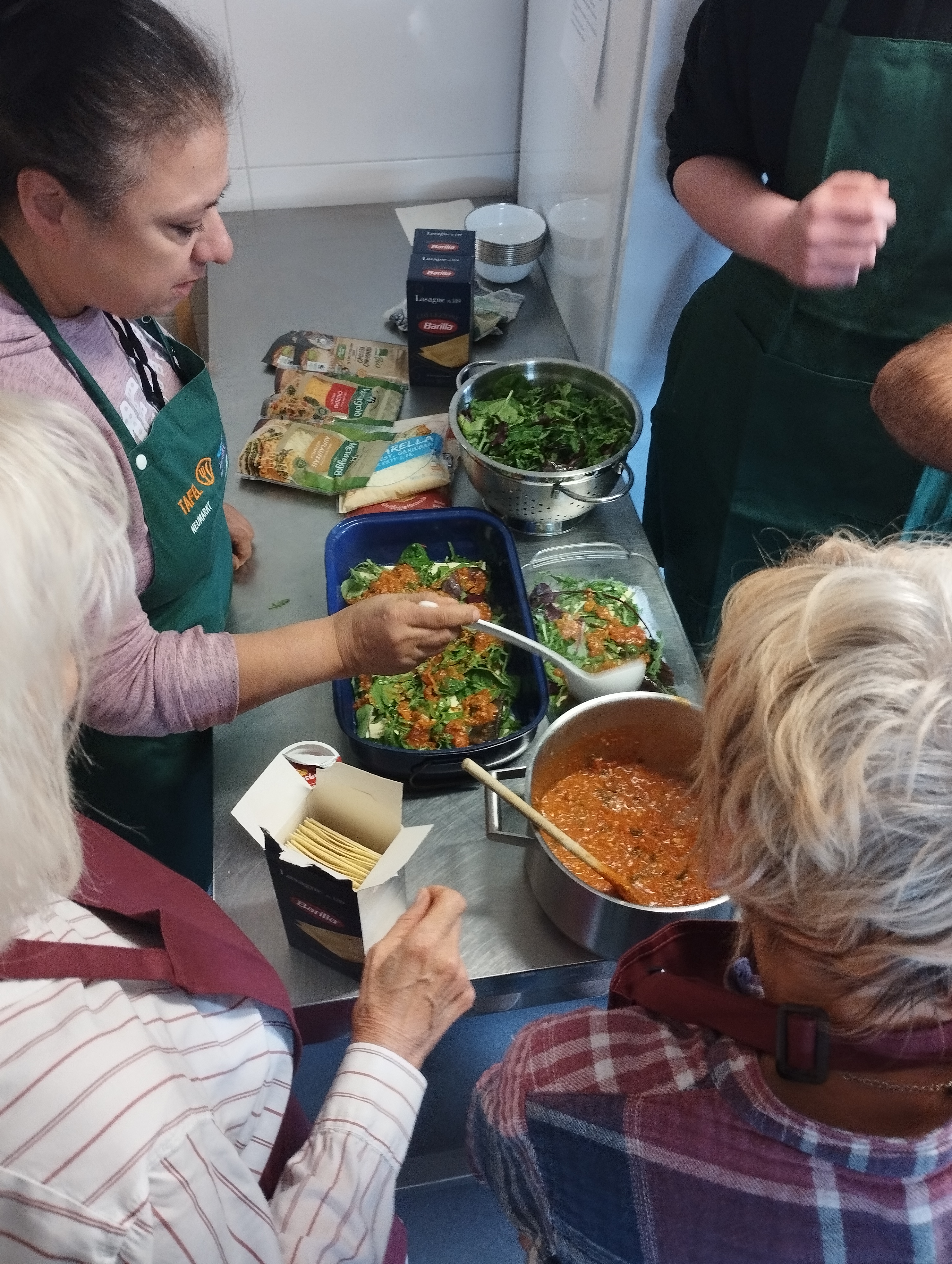 Neben dem praktischen Teil erhielten die Teilnehmenden auch theoretischen Unterricht in den Bereichen Lebensmittelhygiene, Lebensmittelverschwendung und -rettung, Mindesthaltbarkeitsdatum sowie Lagerung von Lebensmitteln. Im Mittelpunkt stand die Frage, wie sich mit begrenzten finanziellen Mitteln und den Lebensmitteln aus dem Leb-mit-Laden gesunde und ausgewogene Gerichte zubereiten lassen. Die Rezepte wurden von Mitarbeitenden mit kulturellem Bezug zu den jeweiligen Länderküchen entwickelt und gezielt so angepasst, dass sie vorwiegend mit den vorhandenen Tafel-Produkten umsetzbar waren – nachhaltig, kostengünstig und praxisnah.