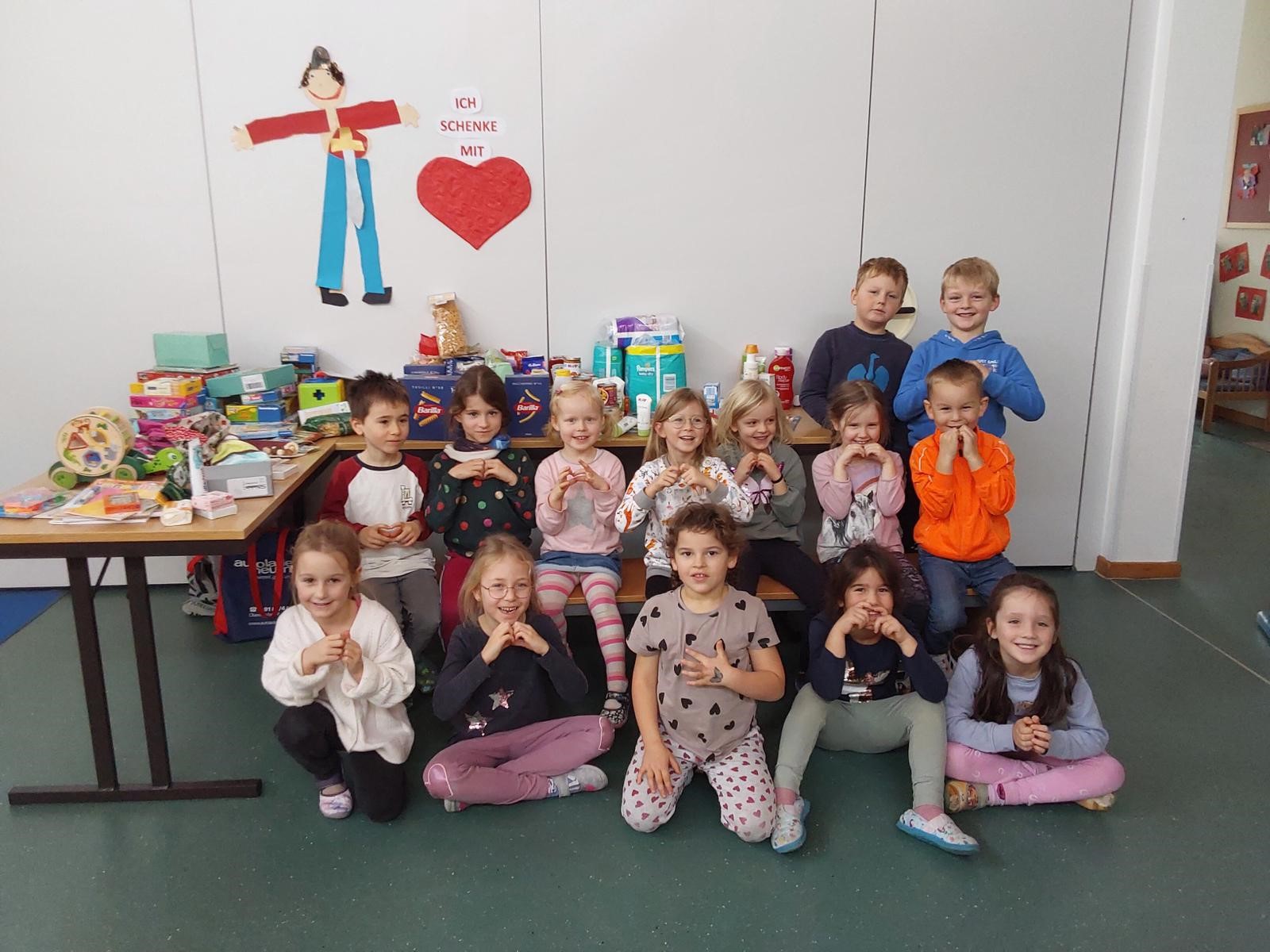 Wir durften uns über zahlreiche Geschenke freuen, die der Kindergarten Thannhausen im Rahmen der Aktion "Weihnachten im Schuhkarton" überreichte.