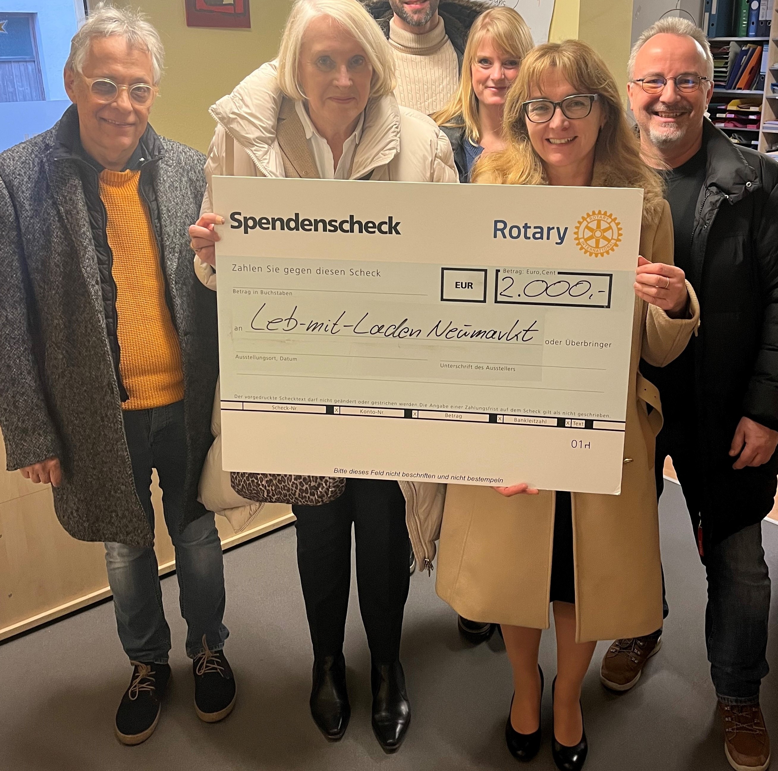 Im Rahmen der weihnachtlichen Tombola des Rotary Clubs Neumarkt-Parsberg kamen 2.000 Euro für den Leb-mit-Laden – Tafel der Diakonie NAH e.V. zusammen. Um die Spende persönlich zu überreichen und sich ein Bild von der Arbeit vor Ort zu machen, besuchte eine Delegation des Rotary Clubs Neumarkt-Parsberg die Einrichtung. Wolfram Finck, Andreas Hoffmann und Präsidentin Martina Hintz-Wendl wurden von Dr. Elke Kaufmann, geschäftsführende Vorständin der Diakonie NAH e.V., sowie Sonja Schambeck (Pädagogische Leitung) und Thomas Torres Caraballo (Projektkoordinator) herzlich empfangen.